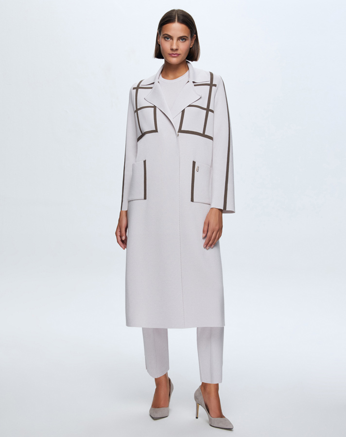 T24K-8013 Kare Desenli Uzun Hırka RAME-BONE