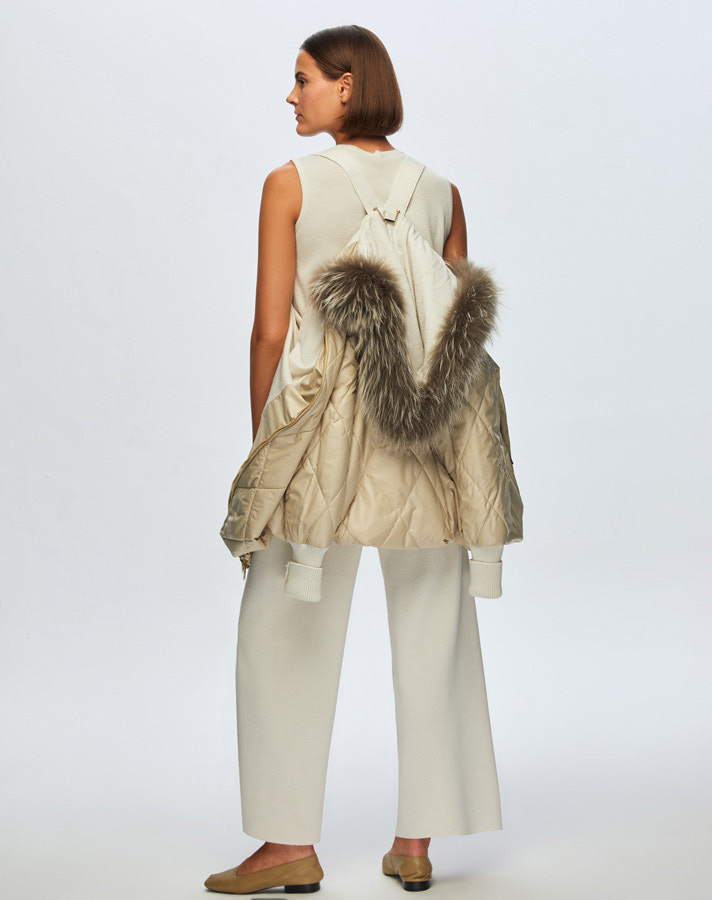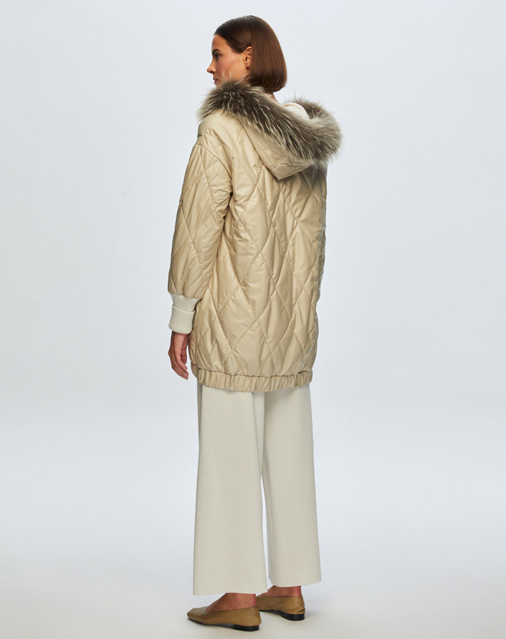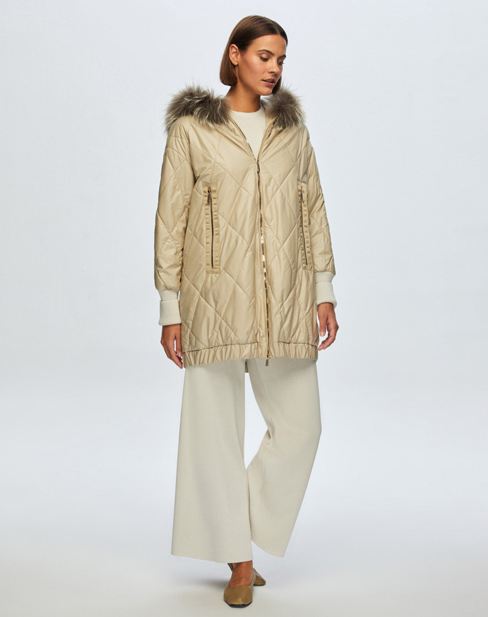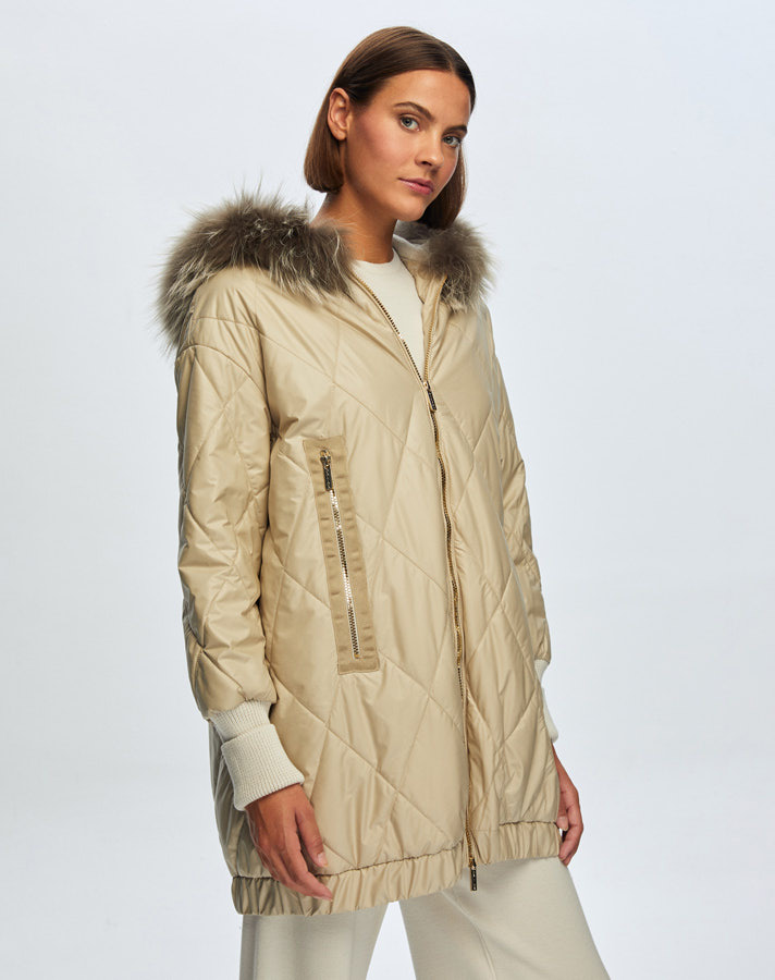 T24K-8015 Baklava Dilimli Kürklü Mont BEİGE