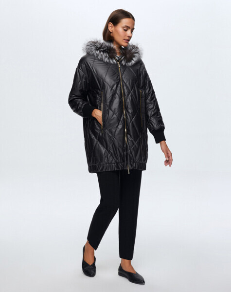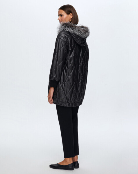 T24K-8015 Baklava Dilimli Kürklü Mont BLACK