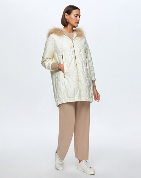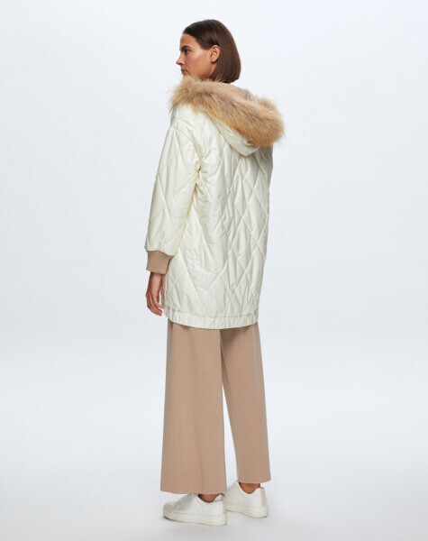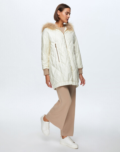 T24K-8015 Baklava Dilimli Kürklü Mont ECRU