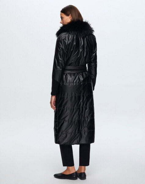 T24K-8021 Askı Detaylı Kürklü Uzun Mont BLACK