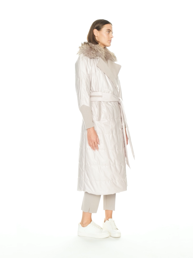 T24K-8021 Askı Detaylı Kürklü Uzun Mont GREY