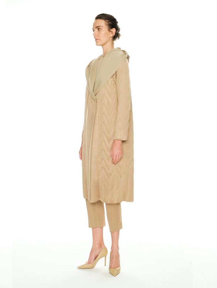 T24K-8023 Kapişonlu Kapitone Kap COMO-CAREMEL