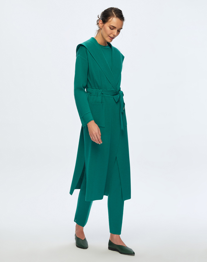T24K-9007 Beli Kuşaklı Düz Renk Hırka IMOLA-EMERLAND
