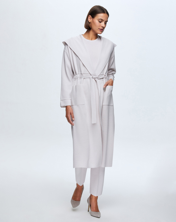 T24K-9007 Beli Kuşaklı Düz Renk Hırka RAME-BONE
