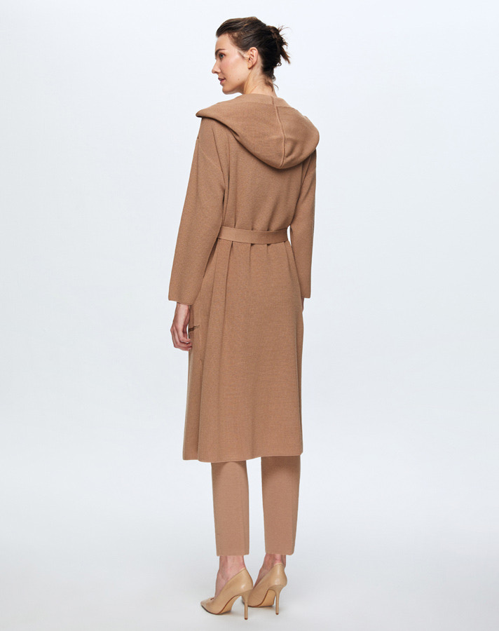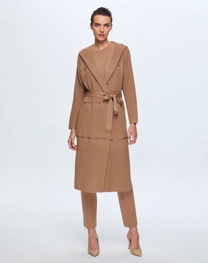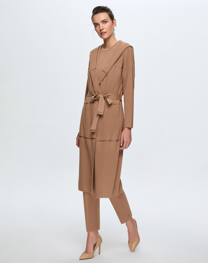 T24K-9009 Taş Şeritli Triko Uzun Hırka COMO-CAREMEL