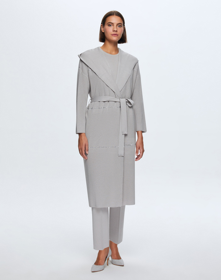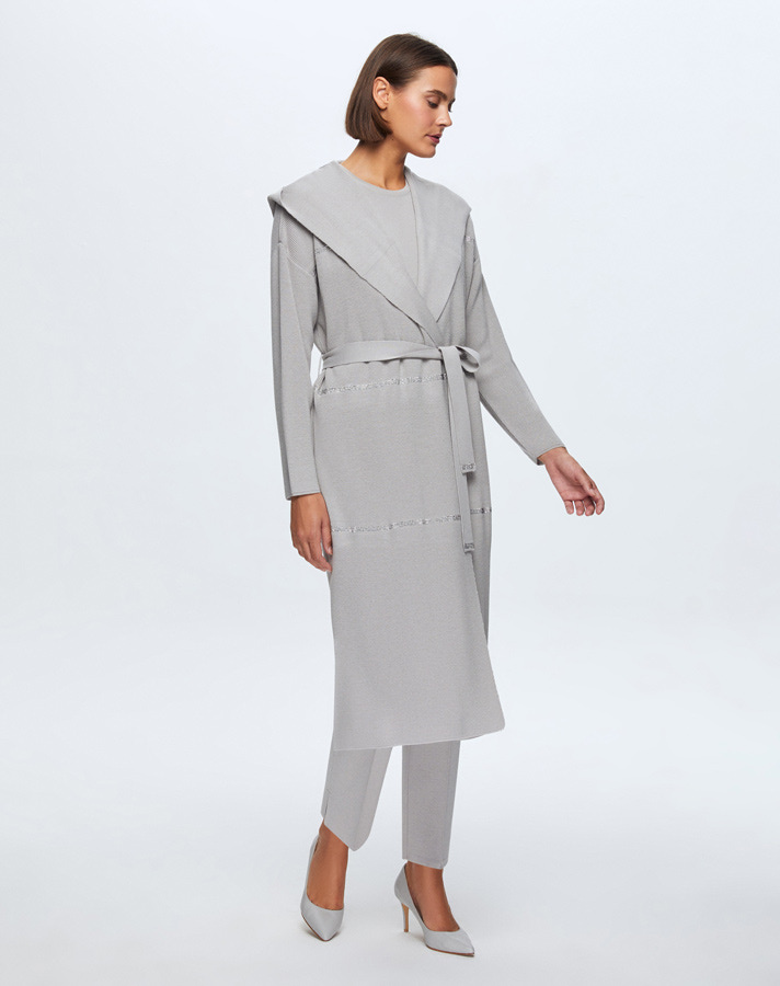 T24K-9009 Taş Şeritli Triko Uzun Hırka VİLLA-GREY