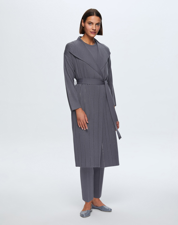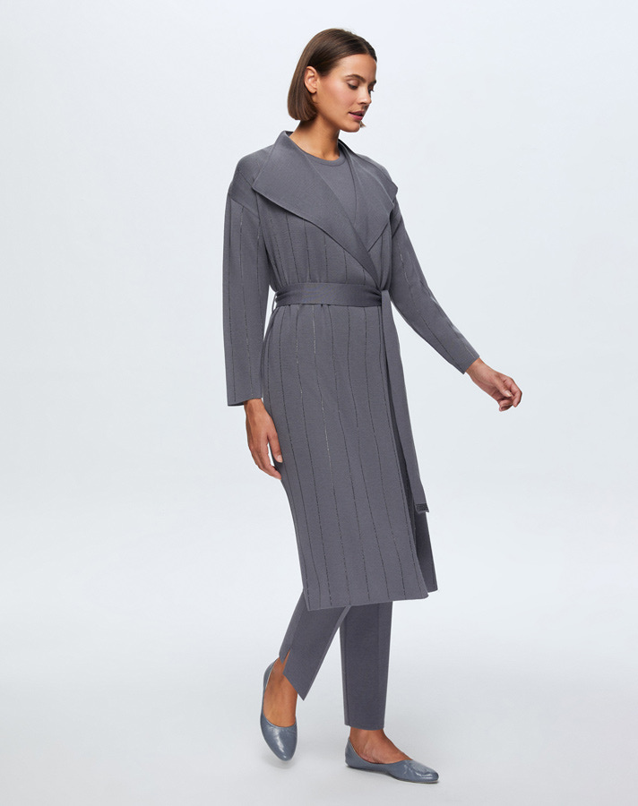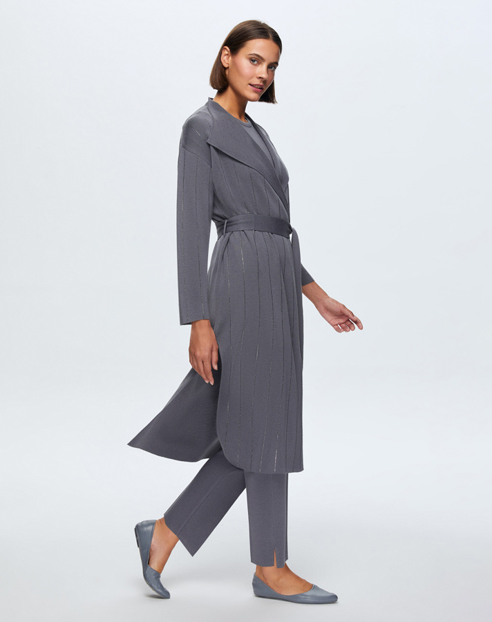 T24K-9011 Taş Detaylı Şal Yaka Uzun Hırka OMERO-DARK GREY