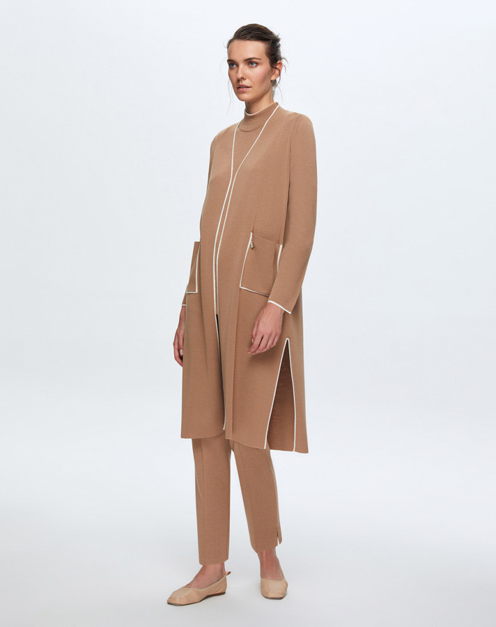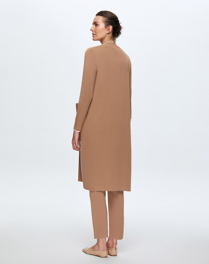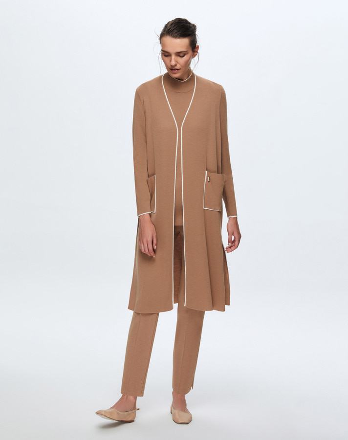 T24K-9015 Renk Şeritli Uzun Triko Hırka COMO-CAREMEL