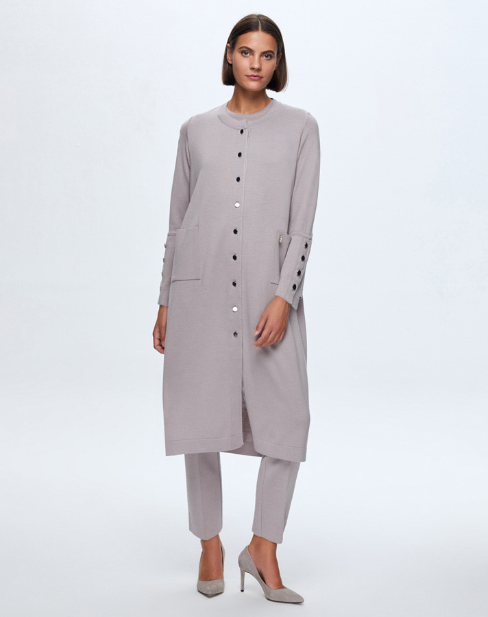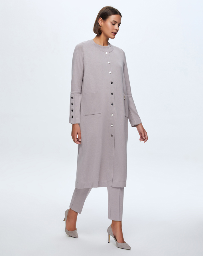 T24K-9022 Düz Renk Düğmeli Uzun Hırka TERRA-MİLKY