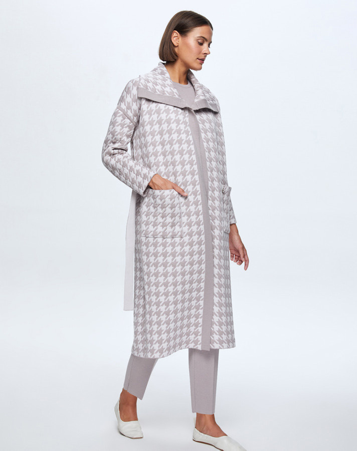 T24K-9023 Kaz Ayağı Desenli Kapitone Hırka TERRA-MİLKY