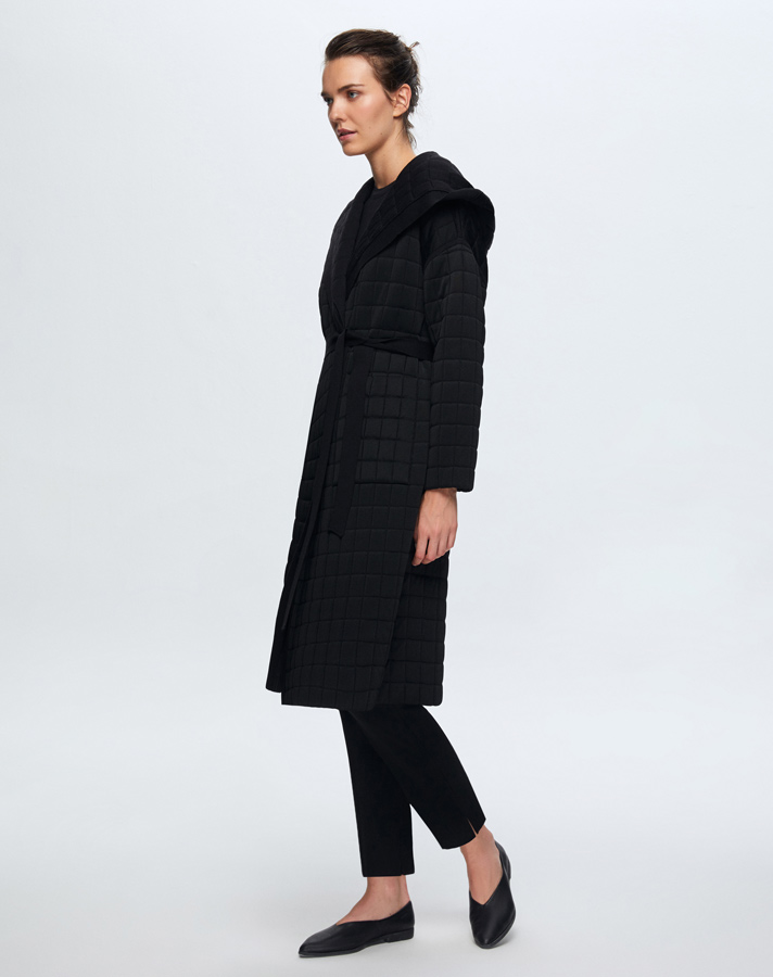 T24K-9026 Beli Kuşaklı Kapitone Hırka BLACK