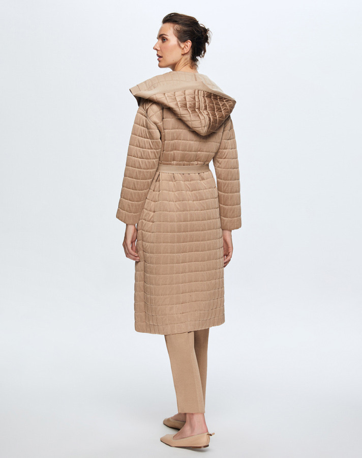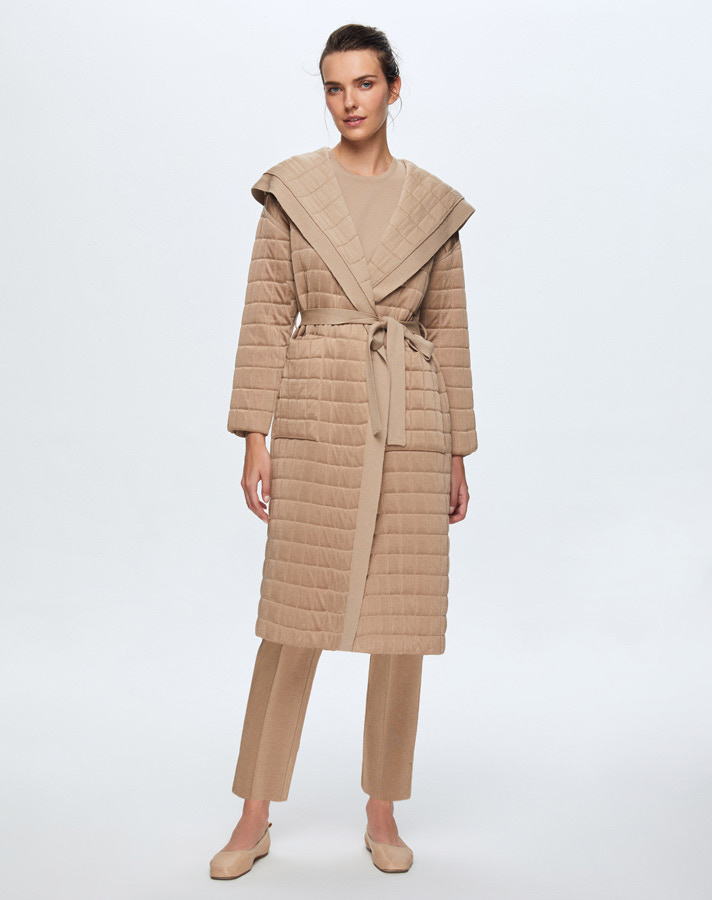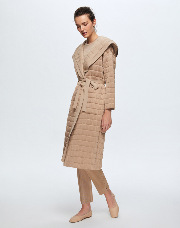 T24K-9026 Beli Kuşaklı Kapitone Hırka CORO-CAMEL