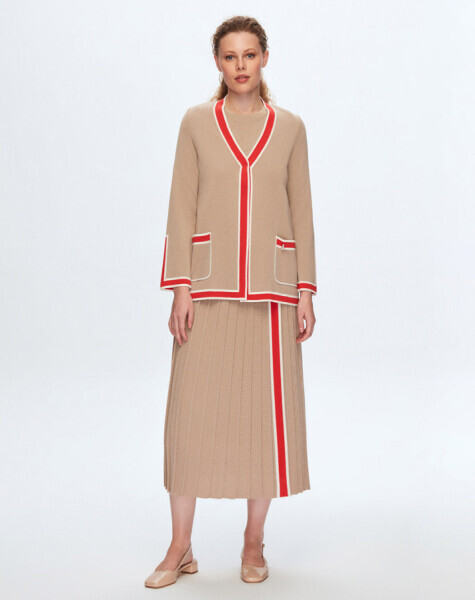T25K-9011 Taş Detaylı Uzun Hırka YY216-BEİGE