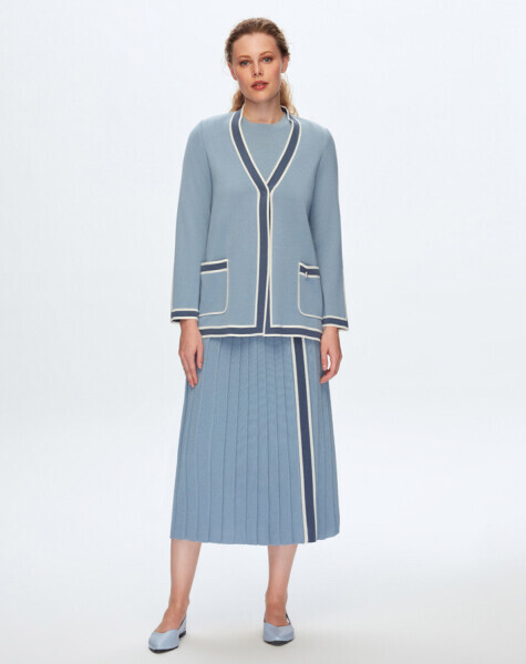 T25K-9003 Yaka Detaylı Agraflı Uzun Hırka PB13E-BLUE