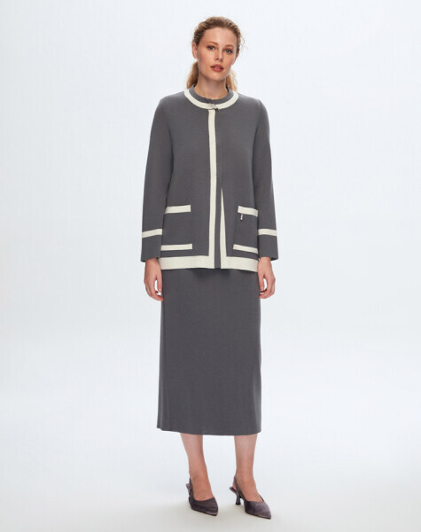İki Cepli Klasik Gri Hırka