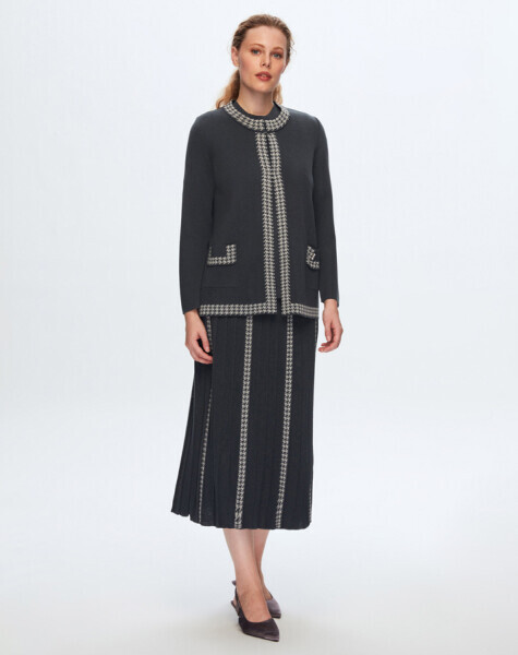 Kaz Ayağı Desen Detaylı Cepli Kahverengi Hırka
