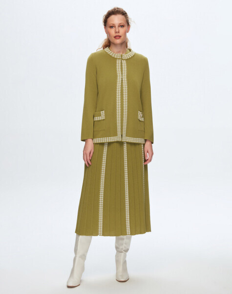 Kaz Ayağı Desen Detaylı Cepli Kahverengi Hırka