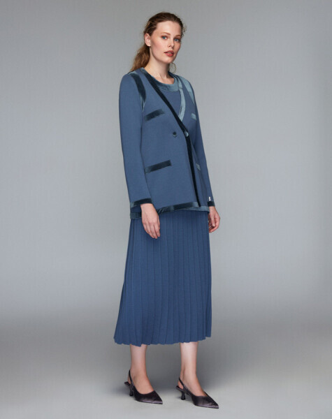 Kadife Detaylı Klasik Gri Hırka