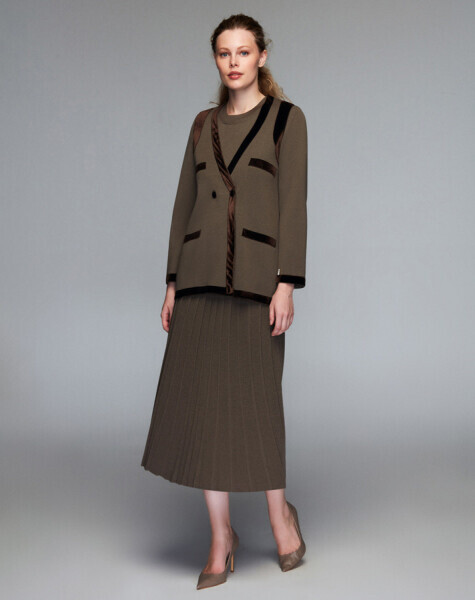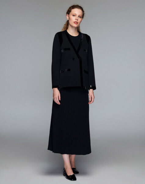 Kadife Detaylı Klasik Mavi Hırka
