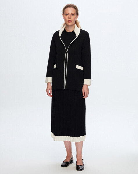 T25Y-8015 Çiçek Broşlu Kruvaze Kesim Ceket STONE
