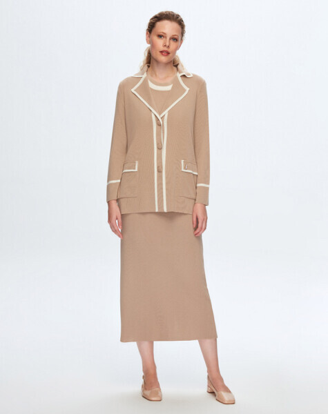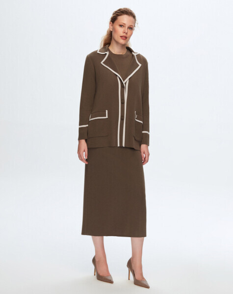 Erkek Yaka Şerit Detaylı Kahverengi Hırka
