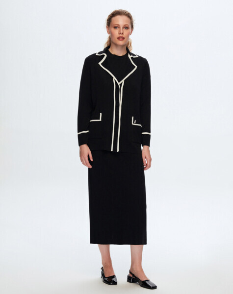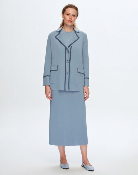 Erkek Yaka Şerit Detaylı Mavi Hırka