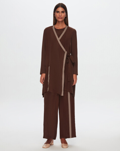 T24Y-0006 Bağlama Detaylı Cupro Hırka Bluz Takım CACAO