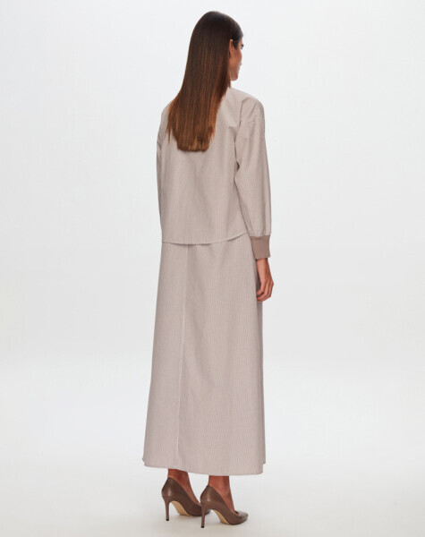 T24Y-0008 Çizgili Crop Ceket Elbise Takım BEİGE