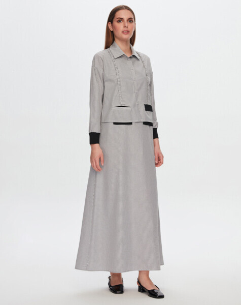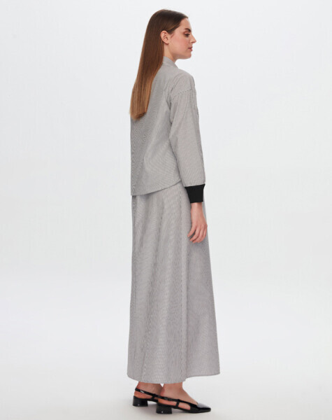 T24Y-0008 Çizgili Crop Ceket Elbise Takım BLACK