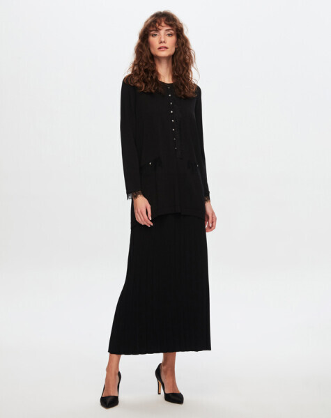 T25K-2008 A Kesim Düğme Detaylı Etek BLACK