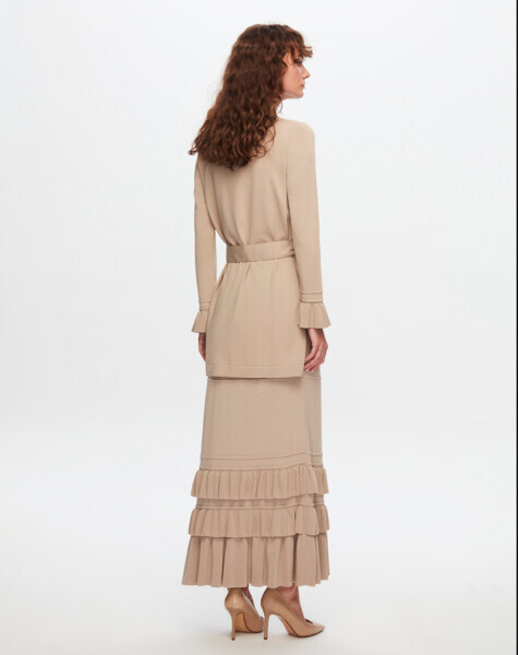 T24Y-2004 Etek Ucu Fırfırlı Çam Kesim Etek 1052-BEİGE