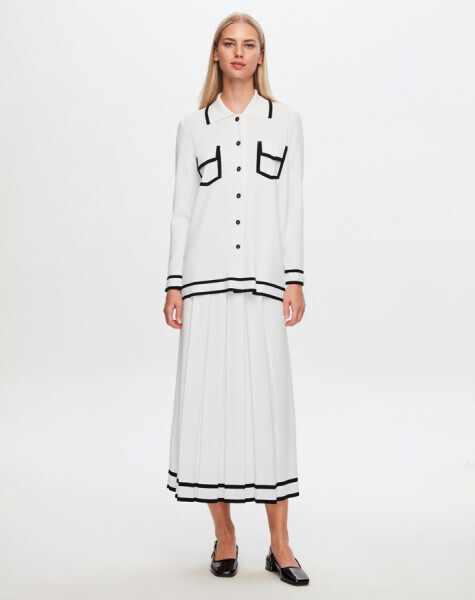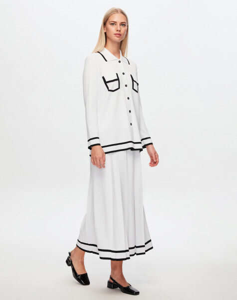 T24Y-2005 Etek Ucu Çizgili Kalın Pliseli Etek 1100-WHİTE