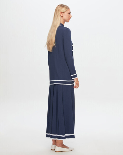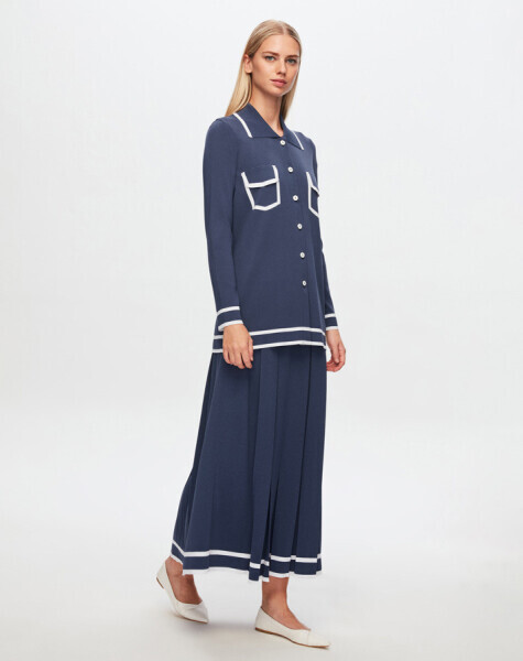 T24Y-2005 Etek Ucu Çizgili Kalın Pliseli Etek 1361-INDIGO