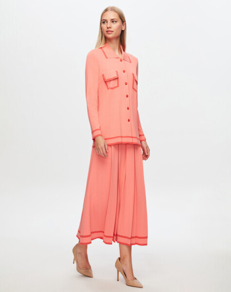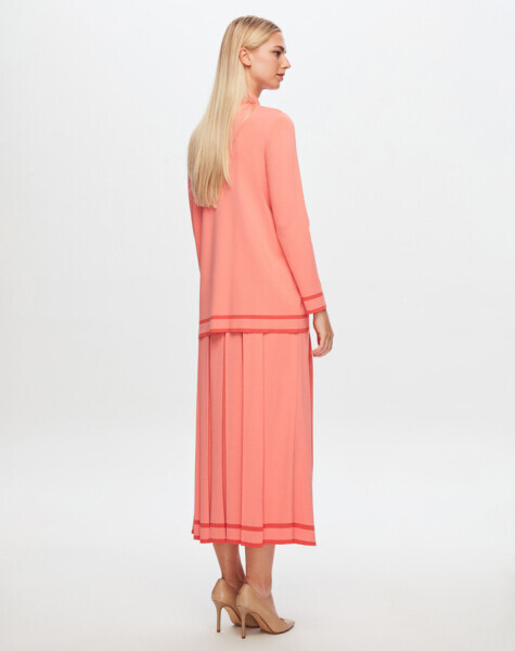 T24Y-2005 Etek Ucu Çizgili Kalın Pliseli Etek 1481-PİNK