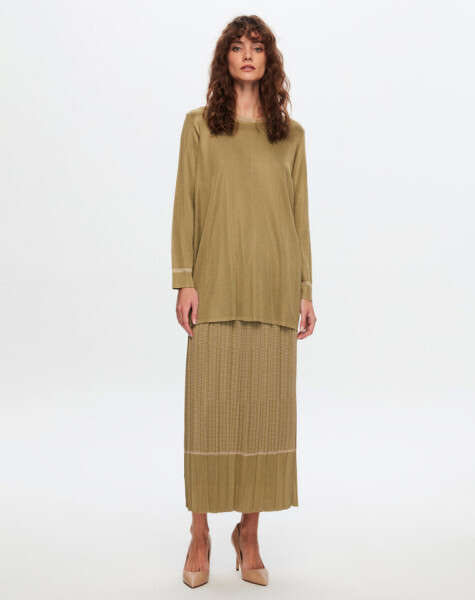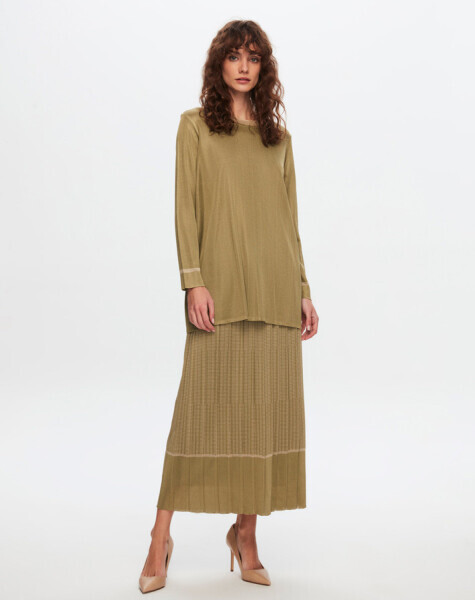 T24Y-2007 Minimal Desenli Parlak Etek OLİVE / CRAFT