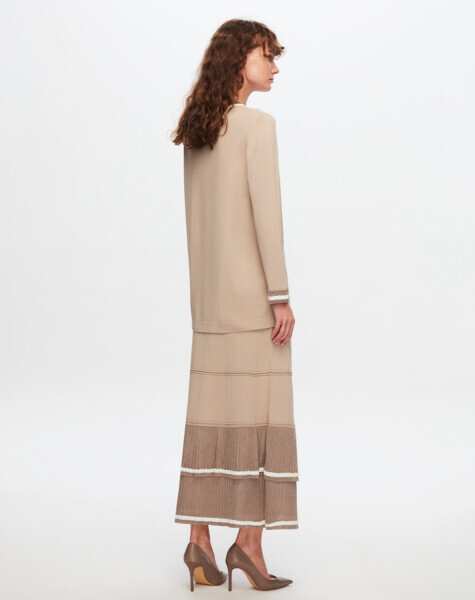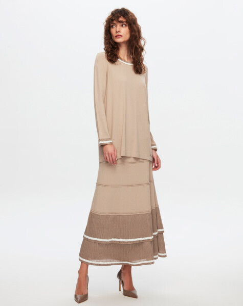 T24Y-2011 Parlak İp Detaylı Fırfırlı Etek 1052-BEİGE