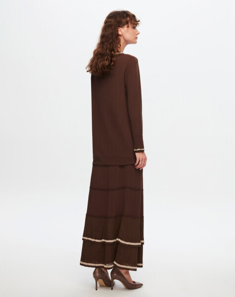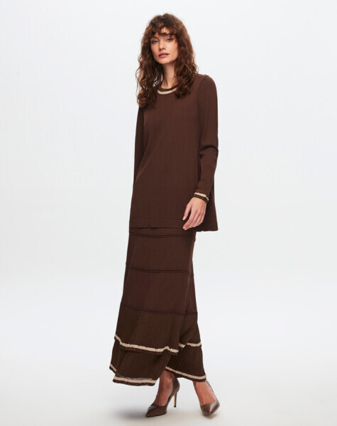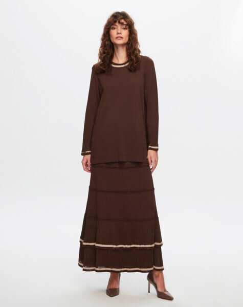 T24Y-2011 Parlak İp Detaylı Fırfırlı Etek 1084-CACAO