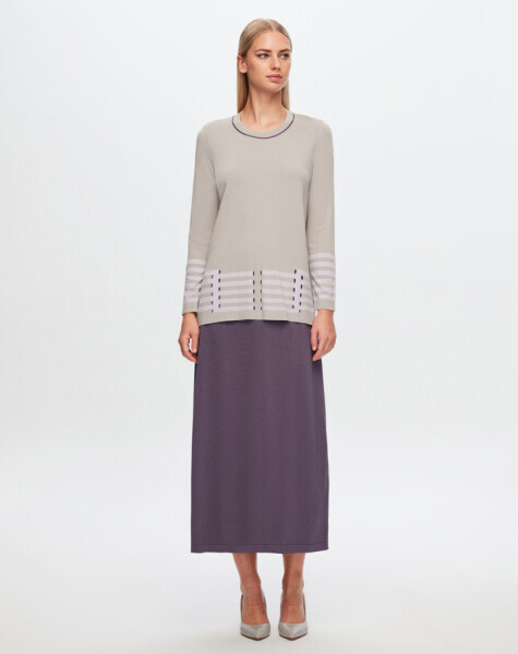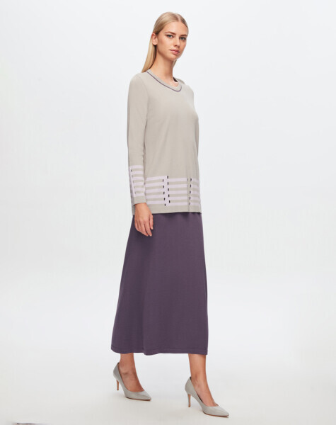 T24Y-2018 Düz Renk Triko Kloş Etek MV188-PURPLE