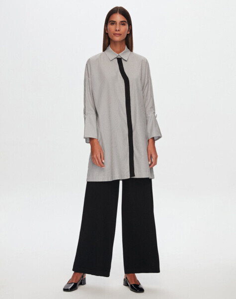 T24Y-3002 Geniş Manşetli Çizgili Gömlek BLACK