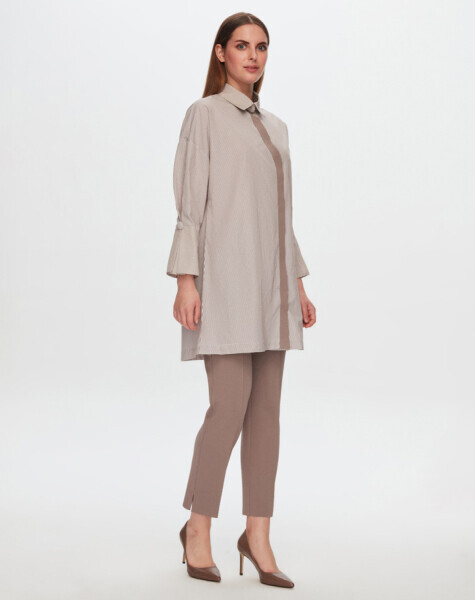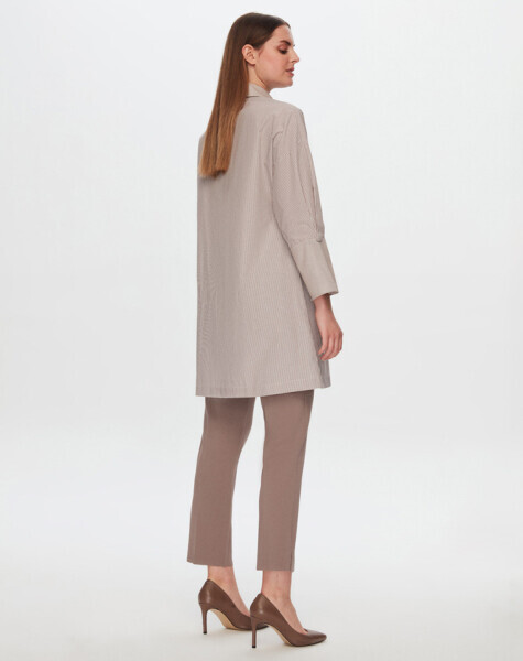 T24Y-3002 Geniş Manşetli Çizgili Gömlek MİNK