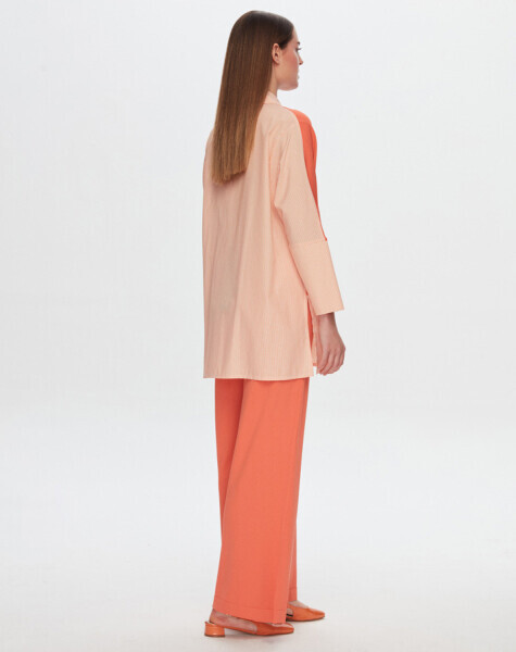 T24Y-3009 Ön Kısmı Triko Çizgili Gömlek 1248-ORANGE