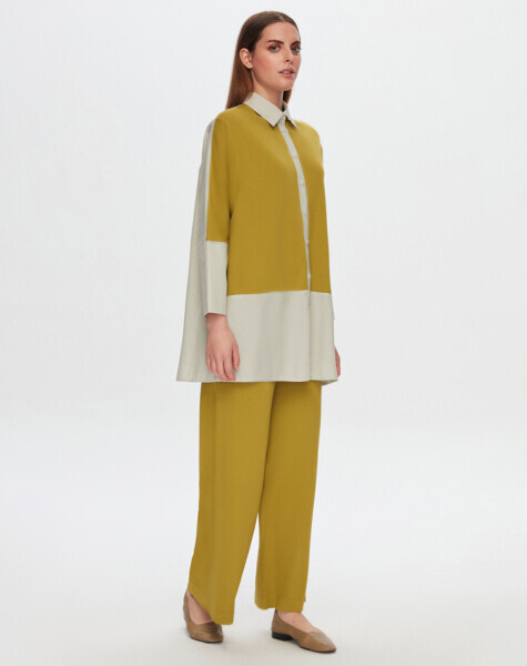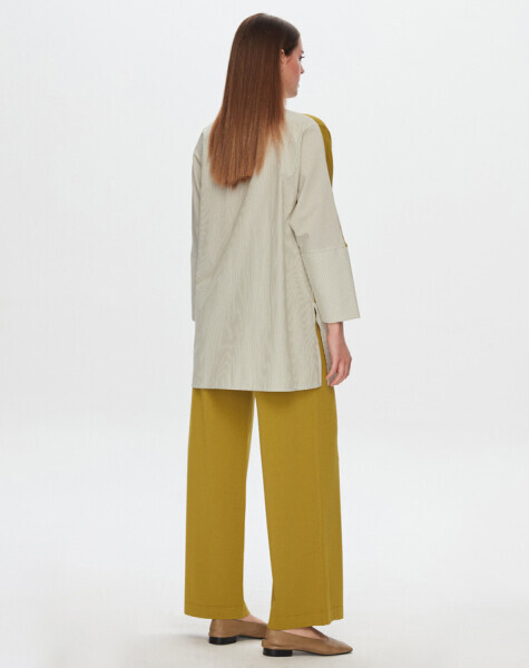 T24Y-3009 Ön Kısmı Triko Çizgili Gömlek 1516-OLİVE