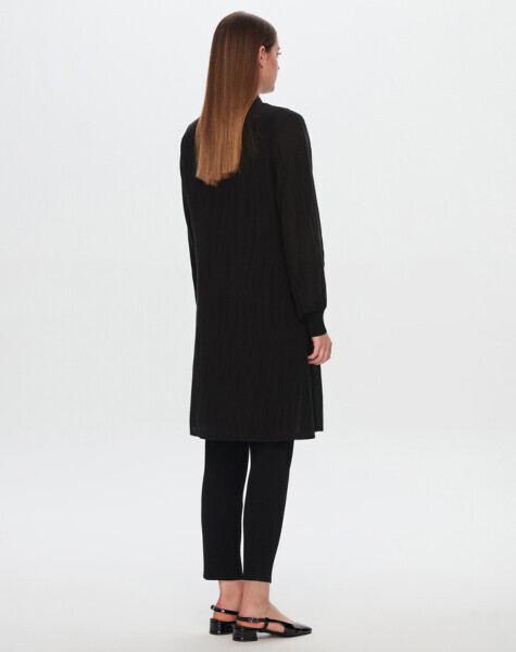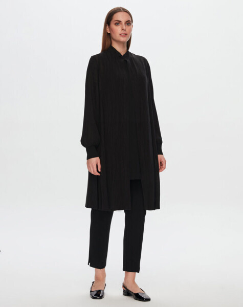 Kendinden Dokulu Uzun Siyah Gömlek