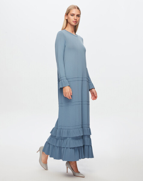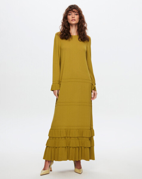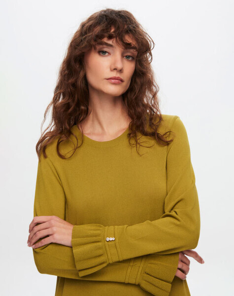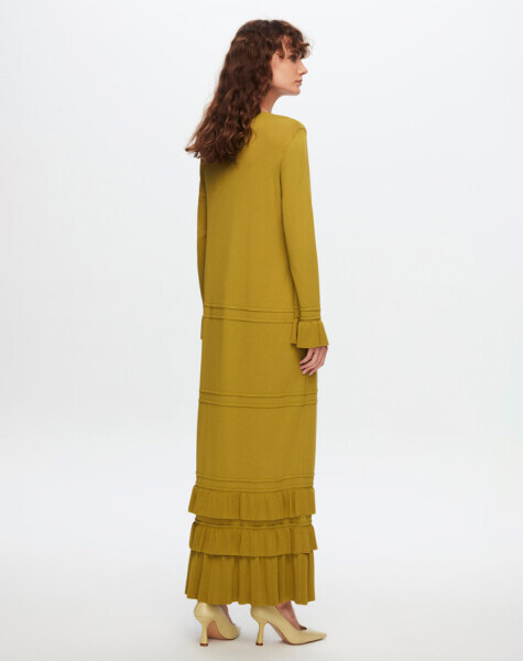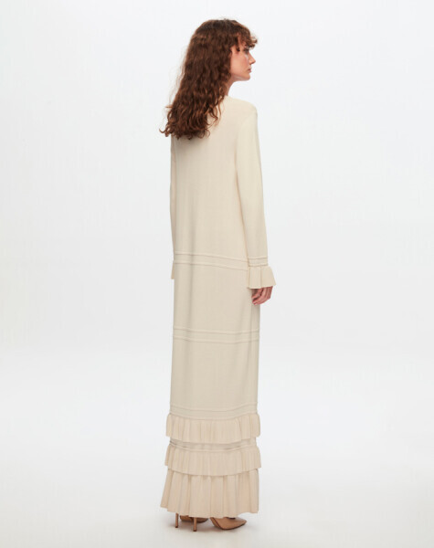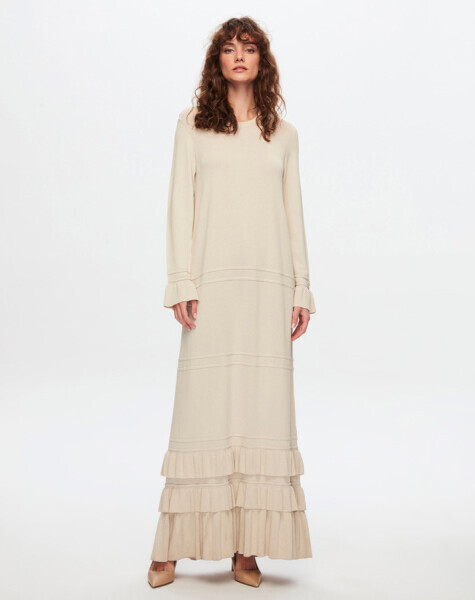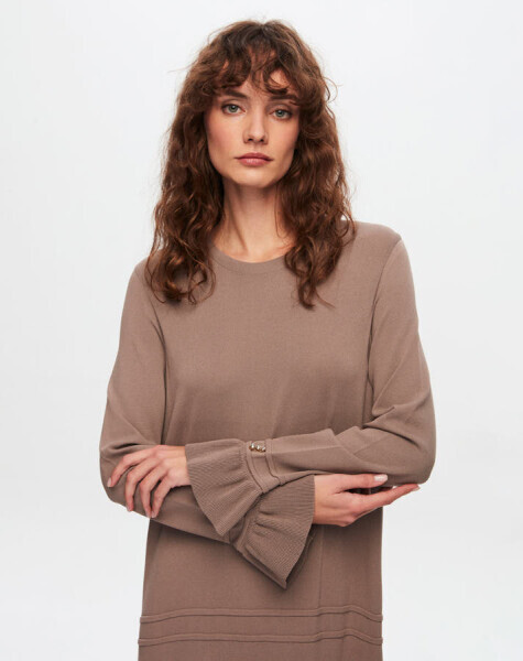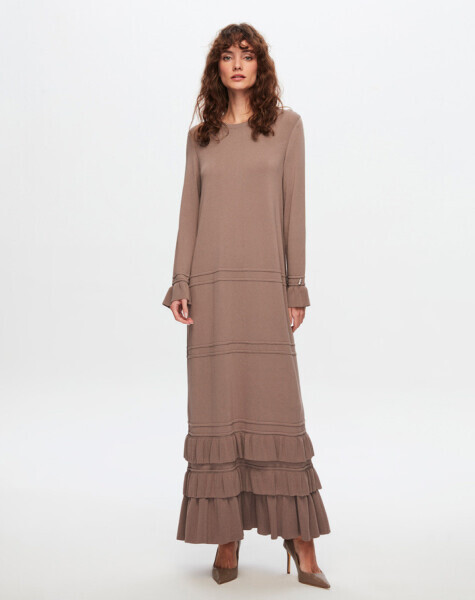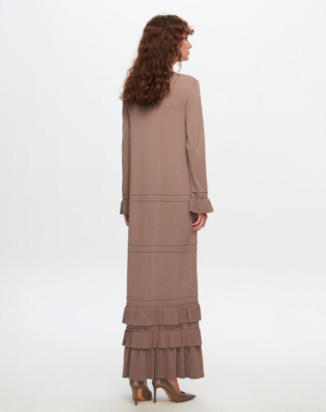 T24Y-4000 Etek Ucu ve Bileği Fırfırlı Triko Elbise 002-MİNK