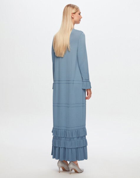 T24Y-4000 Etek Ucu ve Bileği Fırfırlı Triko Elbise 1236-BLUE