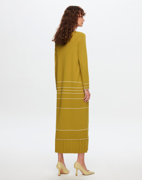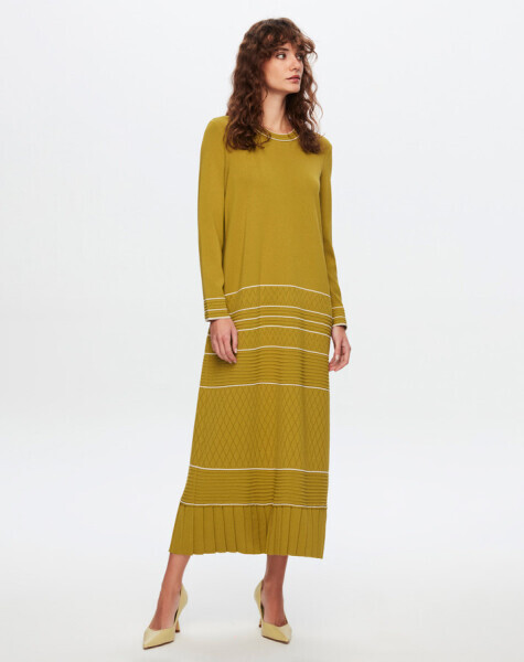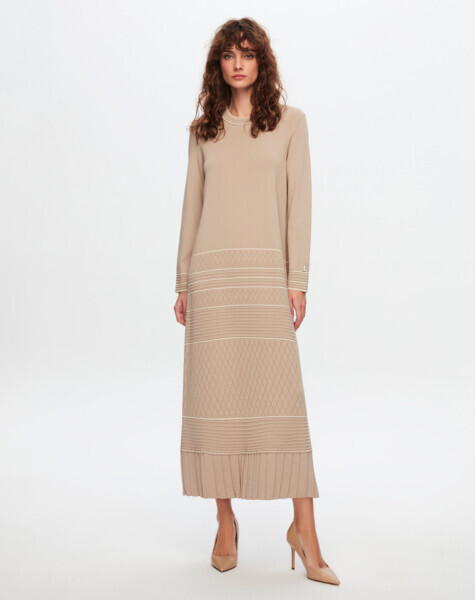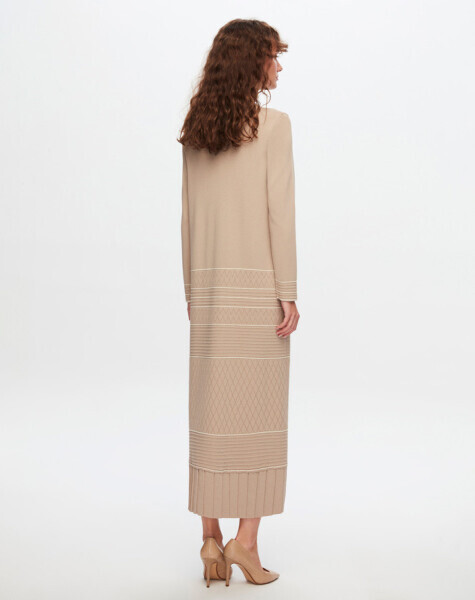 T24Y-4002 Ajurlu ve Çizgi Detaylı Uzun Elbise 1052-BEİGE