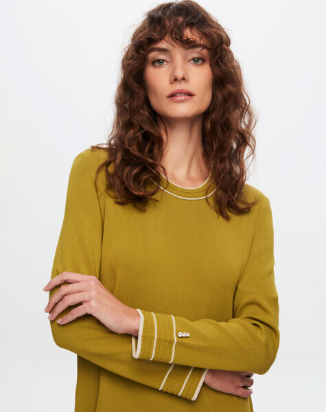 T25Y-4013 Renk Detaylı Kolsuz Triko Elbise 1412-BUTTER