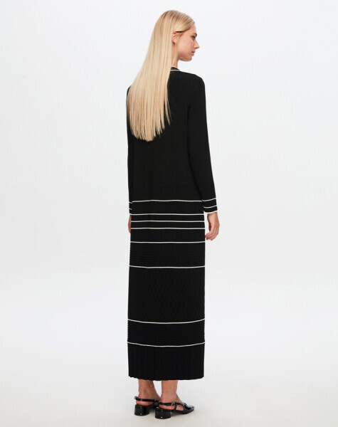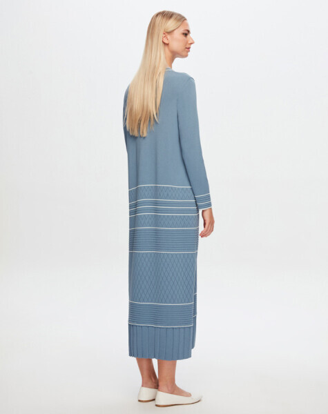 T24Y-4025 Yakası Ve Bileği Desenli Triko Elbise 1236-BLUE