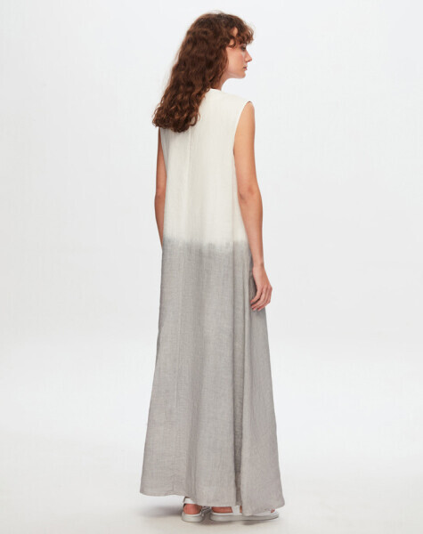 T24Y-4003 Degradeli Uzun Keten Elbise DARK GREY